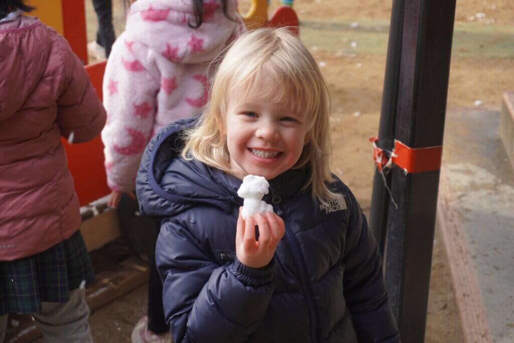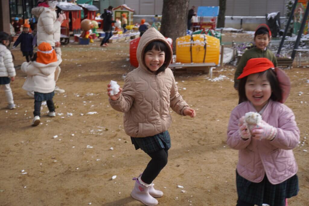 そっと触れて「つめた~い!」と笑ったり、友達と力を合わせて雪だるまを作ったり、雪合戦をしたり…。