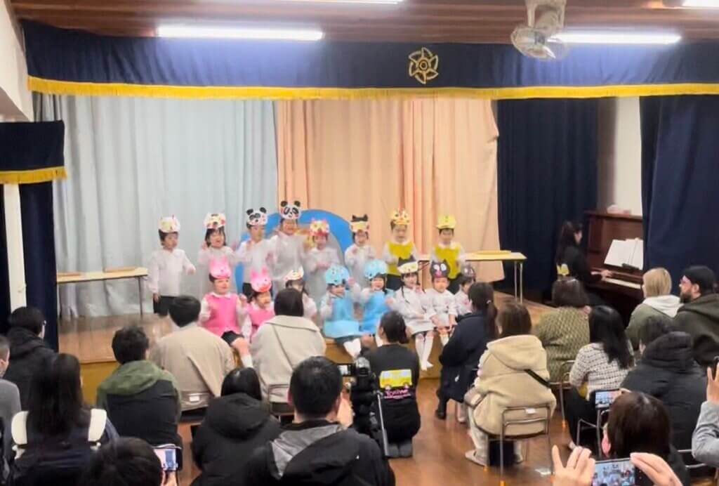 続いて年少のたんぽぽ組さんの劇は「こねこねねこのねこピッツァ」すみれ組さんは「まほうのれいぞうこ」です。大きな舞台に少しドキドキしながらも「がんばるぞ!」の気持ちを胸にどちらのクラスも元気いっぱいのセリフがホールに響き、おうちの方もニコニコ笑顔になりました✨