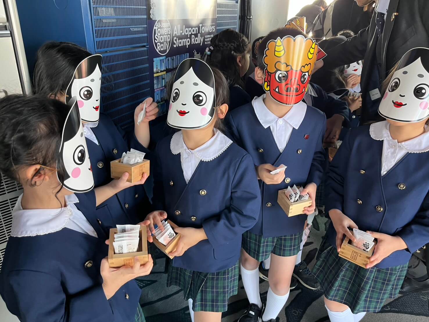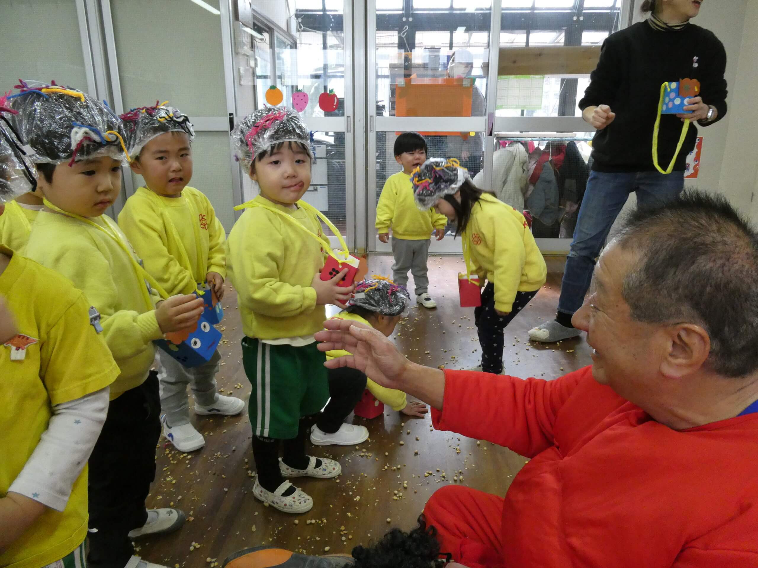 2月2日(月)、年長組が京都タワーへ行き節分祭に参加しました! 鬼と福のお面をもらい、鬼に向かって「鬼は外!福は内!」と元気いっぱい豆を投げました。 豆のお土産ももらい、ニコニコで幼稚園に帰りました! みんなで伝統文化を身近に感じる事ができ... -